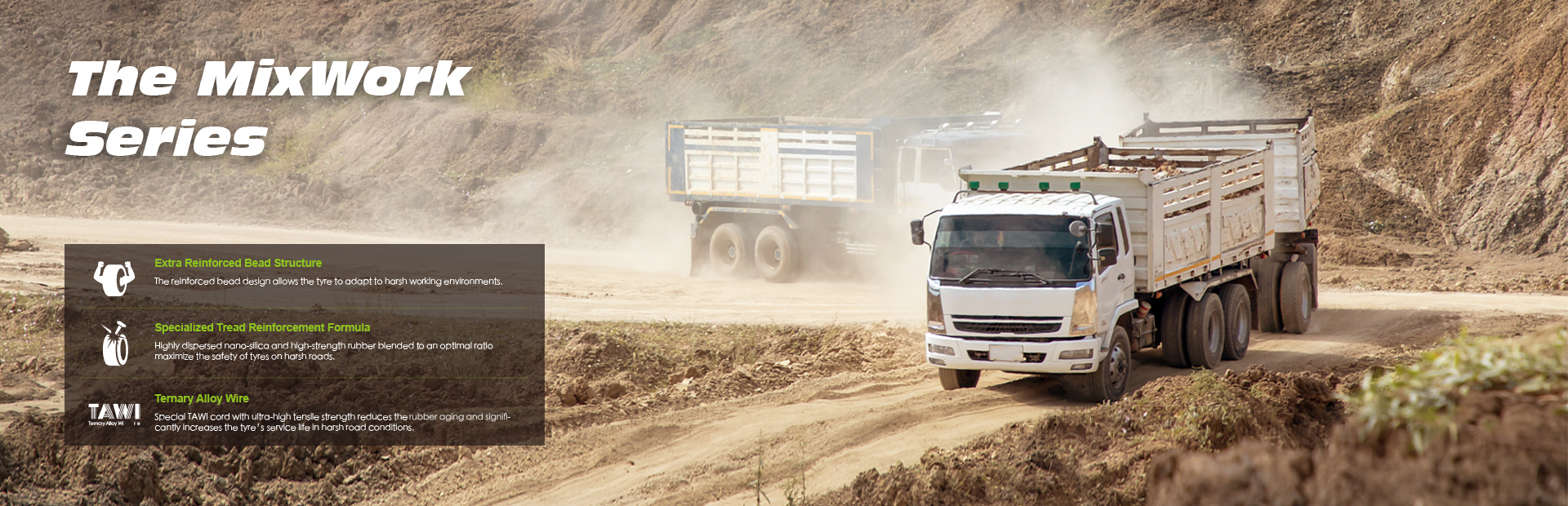 لاستیک مناسب جادههای آسفالت و خاکی با شرایطی ناهموار، گلآلود یا دارای سطوح نامتوازن. امکان حمل بارهای سنگین (در معادن) با سرعتهای متوسط تا کند و با توقفهای زیاد.